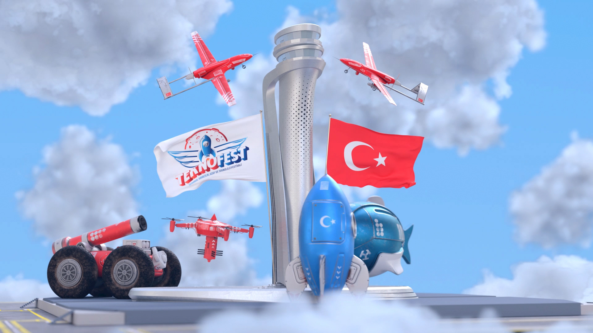 Cream Studio team is recently invited to create a 3D animated TV commercial for the Teknofest Istanbul.The film brings to life the festival's unique technology competitions and a visual language for the advertisement campaign.